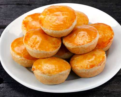 Frango, Frango c/ Catupiry, Palmito, Queijo, Queijo c/ cebola, 4 queijos, Alho poró, Pizza, Carne seca, Carne seca c/ Catupiry, Camarão, Camarão c/ Catupiry, Bacalhau.